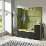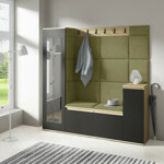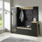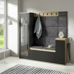 Eka Předsíňová stěna s čalouněnými panely Trinity 28 - Dub Artisan s černou / Tmavá hnědá 2308 i