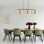 Lustr VALIZ je tvořen třemi válcovitými stínítky krémové barvy visící z malé černé základny na jedné Zobrazit více