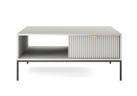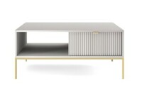 Představte si nejen moderní, ale také funkční kus nábytku, který se stane středobodem Vašeho obývacího pokoje - moderní konferenční stolek NEMO. Tento kousek nábytku je dokonalým spojením moderních prvků v dekoru Šedá s vysokými kovovými nohami v černé nebo zlaté barvě se zlatými úchytky.