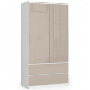 Šatní skříň S90 2 dvířka 2 zásuvky bílá/cappuccino lesk i
